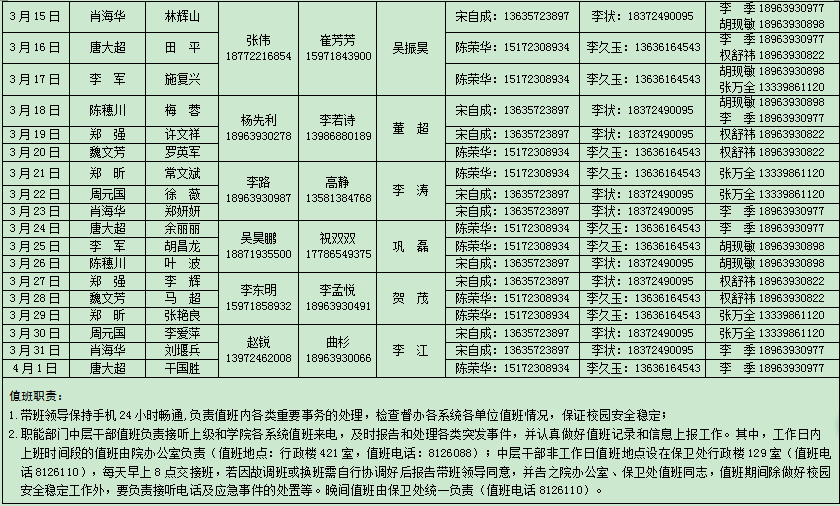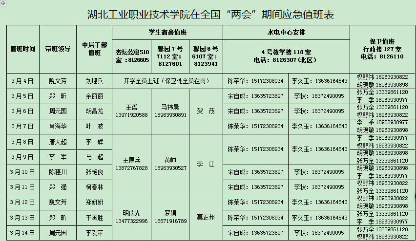 根据市委办公室市政府办公室《关于加强全国“两会”期间值班工作》(【2018】24号)精神,制订了《PG官方网站_PG(中国)在全国“两会”期间应急值班表》,现将应急值班表印发给你们,请严格抓好落实。