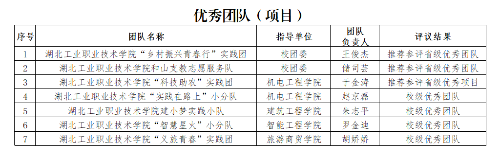 根据团省委、省学联《关于开展2022年湖北省大中专学生志愿者暑期文化科技卫生“三下乡”“返家乡”社会实践活动总结和通报工作的通知》及学校《关于开展 2022 年“三下乡”“返家乡” 社会实践活动总结及省级、校级优秀评选工作的通知》等文件相关精神。经宣传发动、二级学院推荐、组织校级评审等程序,我校拟推荐“乡村振兴青春行”三下乡社会实践团队等2个团队、1个项目和1个优秀个人为省级优秀候选,并报送团省委参评,拟表彰“PG官方网站_PG(中国)建小梦实践小队”等4个团队和10名同学为校级优秀团队和个人(具体名单附后),先予以公示。