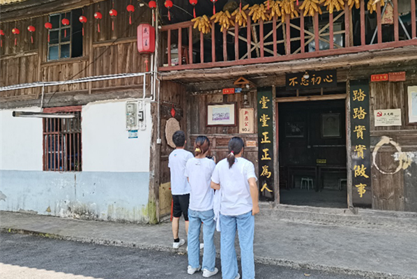 7月15日,团队抵达湖北省恩施州建始县店子坪村,开展实地参观活动。在这里同学们参观了店子坪村的产业园、村史馆、愚公精神展览室、山泉民族幼儿园和土家吊脚楼。