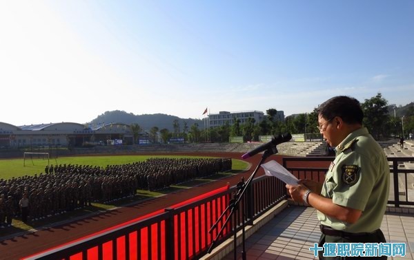 新闻网讯(文/曾刚 图/壮戈)一年一度秋风爽,又是丹桂飘香时,9月4日上午,我院2012级新生开学典礼暨军训动员大会在北区运动场隆重举行。来自全国各地的新生怀揣着梦想,在风景如画的十堰职院正式开始了大学生活,与此同时,为期15天的军训生活也拉开帷幕。
