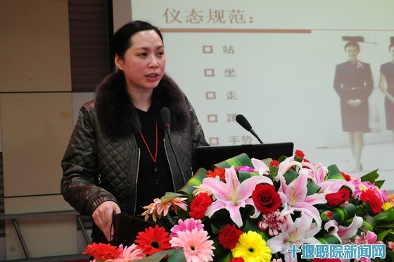 组委会邀请我院素质拓展教育中心副主任、国家级礼仪培训师杨正艳,十堰市经济和信息化委员会副主任唐顺苹、十堰市著名化妆师刘菲分别为志愿者们讲解《县域经济工作会礼仪礼节》、《经济工作会背景知识》以及政务化妆等内容。