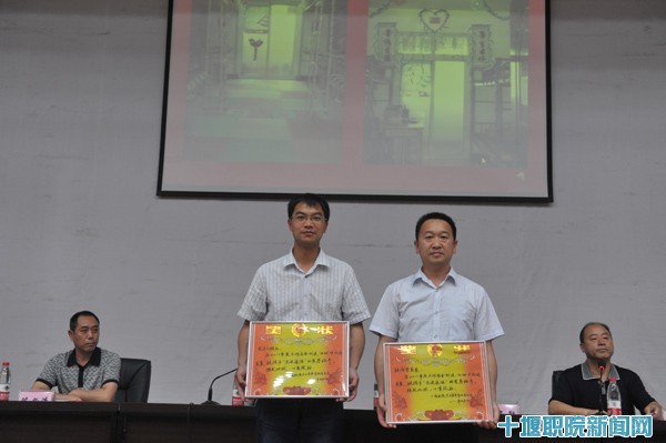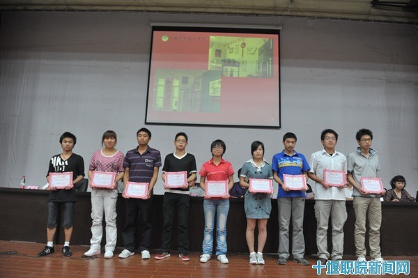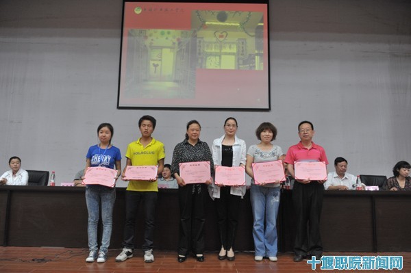 院长助理、学工处处长肖海华宣读了《2010年度宿舍文明创建活动表彰决定》,经济贸易系、电子工程系荣获宿舍文明创建“先进集体”;机电32079个宿舍获得“文明宿舍标兵”;生化57319个宿舍获得“文明宿舍”称号;建筑5707宿舍张东月等9人获得“优秀宿舍长”;何西海等6人被评为“先进个人”荣誉称号。与会领导为获奖宿舍及个人颁奖。