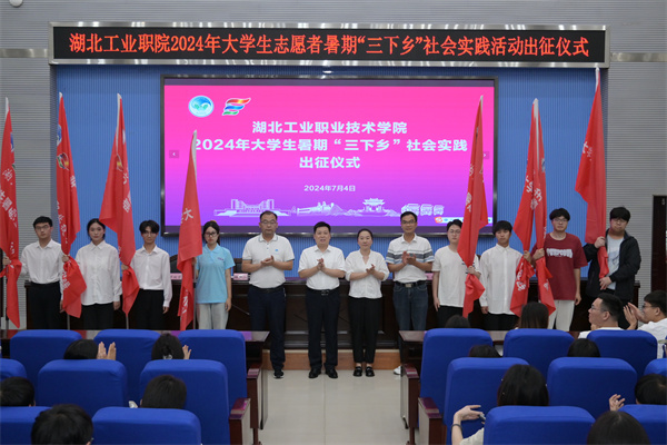 新闻网讯(文/玉声 图/姚堃)“暑期‘三下乡’,我们来了!”伴随着欢呼声,PG官方网站_PG(中国)25支大学生志愿者暑期“三下乡”队伍正式出征。7月4日晚,湖北工业职院2024年大学生志愿者暑期“三下乡”出征仪式在学术报告厅举行。校党委委员、副校长胡昌龙和校团委、马克思主义学院、创新创业学院主要负责人,以及160多名暑期实践团队师生代表参会。