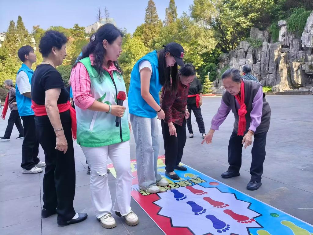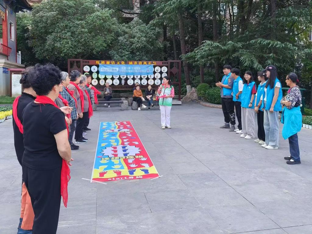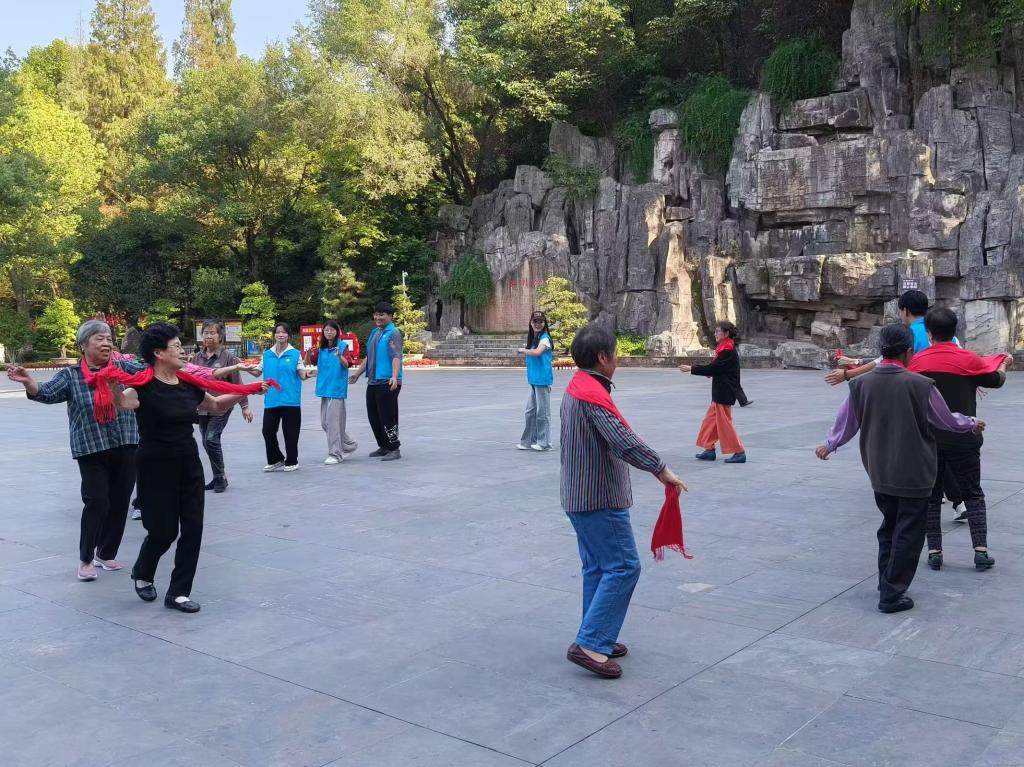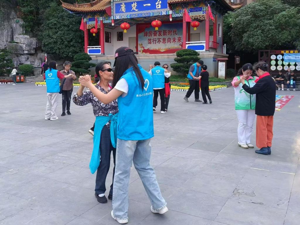 此前,还有我校青春e行志愿者服务队于10月9日协助惠湾社区工作人员在十堰市人民公园开展“有爱无碍,亿起加油”的活动,陪伴老人们在人民公园登高望远、赏菊、唱红歌、跳舞等,为老人送上重阳节的糕点,帮助他们拍照留念。