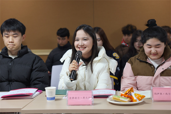 “希望食堂增设新疆饭菜窗口”“建议为专升本的同学提供更便利条件,后续能得到更有针对性的辅导”“让哈萨克族舞蹈参与学校活动表演,增进各民族同学之间的相互了解与尊重”“来到学校后我变外向了,通过老师悉心培养我做了主持人,还拿奖了,以后毕业了想留在湖北”……现场气氛热烈而温馨,洋溢着浓浓的团结氛围,少数民族学生代表们结合自身经历踊跃发言,从学业发展、就业前景、校园生活、职业规划等多个维度,分享了他们在校期间的成长历程与收获感悟。老师们认真倾听每一位同学的发言,相关部门负责人不时记录要点,并针对提出的问题建议现场逐一进行细致解答。