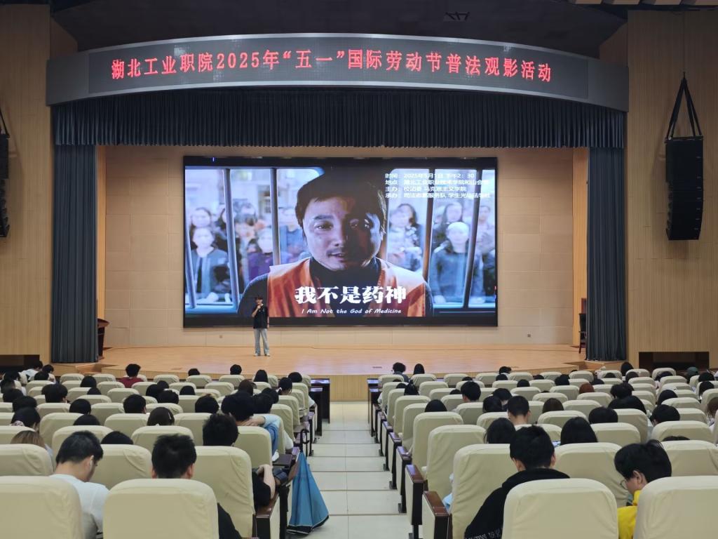 以影为媒,传递法治精神。5月1日,普法主题电影《我不是药神》以真实事件为原型,讲述了主人公在法与情、利与义之间的艰难抉择,折射出药品监管、知识产权保护等社会法治议题。影片中“天价药”“仿制药”等情节引发学生强烈共鸣。我校司法志愿服务队学生负责人吴剑在放映后表示:“影片不仅是一部现实主义的佳作,更是一堂生动的普法课,我们青年学子应该成为法治进步的参与者、推动者,成为法治素养与社会情怀兼具的新时代青年。”