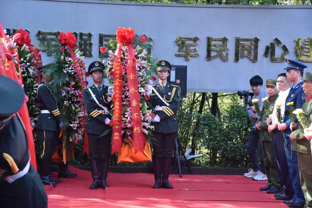 新闻网讯(通讯员 张万全)9月30日上午9时,茅箭区“9.30”烈士纪念日向人民英雄敬献花篮仪式在东沟革命烈士陵园隆重举行。茅箭区委、茅箭区人大、区政府、区政协领导,区直各单位代表、驻区部队官兵、学校师生代表、烈士遗属、老战士代表及社会各界群众齐聚一堂,深切缅怀为民族独立、人民解放和国家富强、人民幸福英勇献身的革命先烈。我校国旗护卫队受邀并光荣承担了此次活动的仪仗任务。