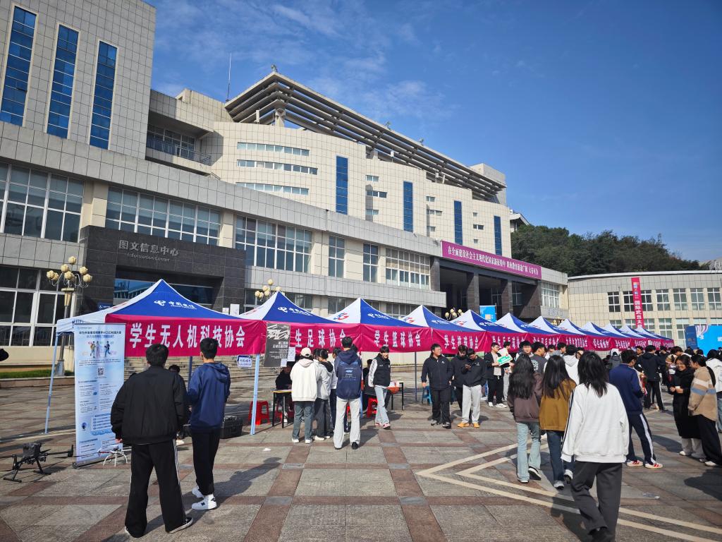 新闻网讯(文/郑丽琼 图/杨学全 张士于)悦己青春,越己社团。10月26日,由校团委主办,校青协、校学生会社团管理部承办的2025年学生社团集中宣传纳新活动在慧智广场举行。全校七个类别62个社团齐聚一堂,通过丰富多彩的展示形式,吸引了众多2025级新生驻足咨询、踊跃报名,同学们满怀热情地穿梭于各个展位之间,积极寻找着心仪的社团。这场热闹的“青春之约”,不仅是新生探索兴趣航向、锤炼综合能力的新起点,更为秋日校园注入了蓬勃的青春活力。