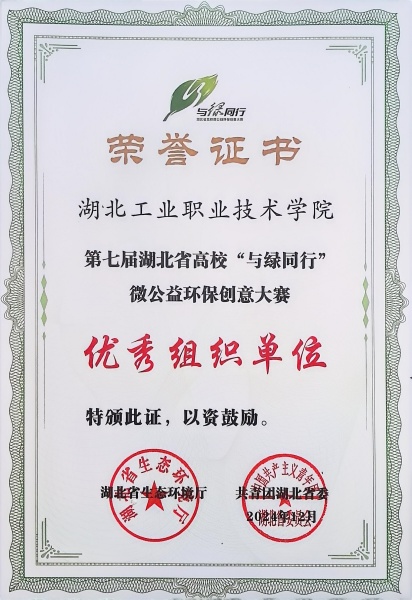 新闻网讯(通讯员 李晓璇)近日,从“与绿同行”大赛主办方处获悉,我校荣获第七届湖北省高校“与绿同行”微公益环保创意大赛“优秀组织单位”称号。